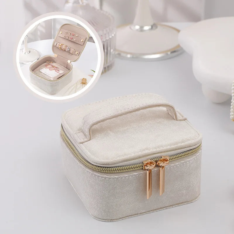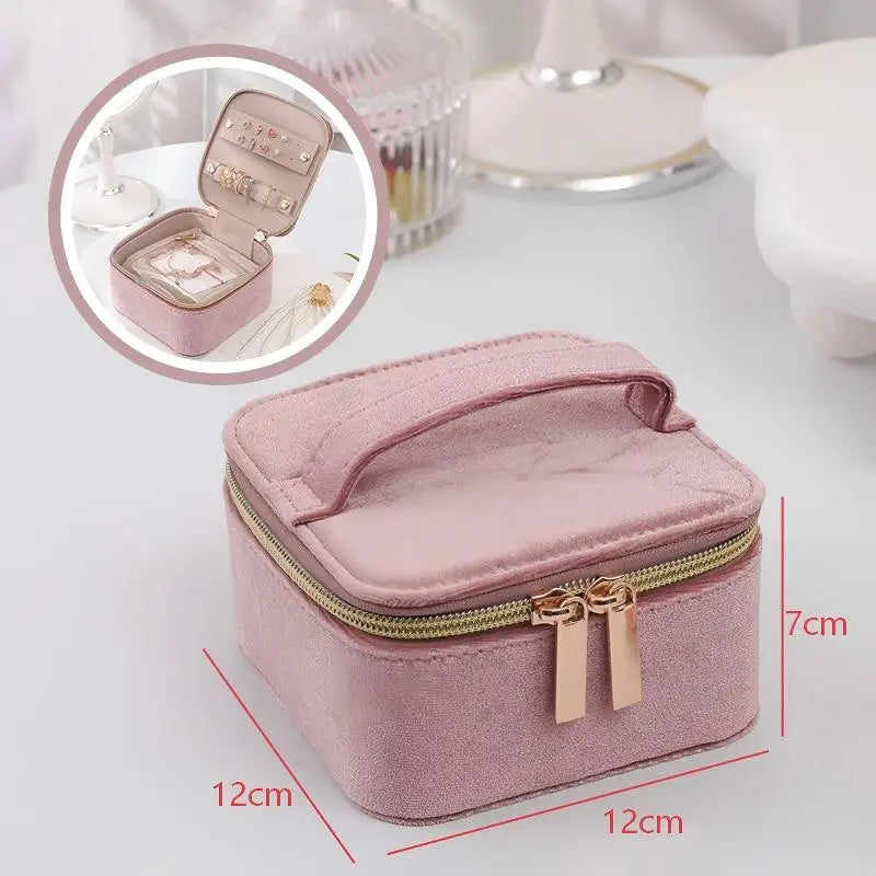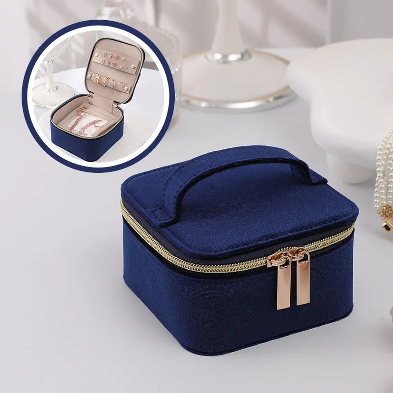 This small jewelry box/storage case offers thoughtful organization for rings, necklaces, bracelets, and earrings. Thanks to practical compartments and a secure closure, your jewelry remains neatly stored and protected from scratches or tangles – perfect for travel or stylish storage at home. Beautifully crafted with velvety fabric.
